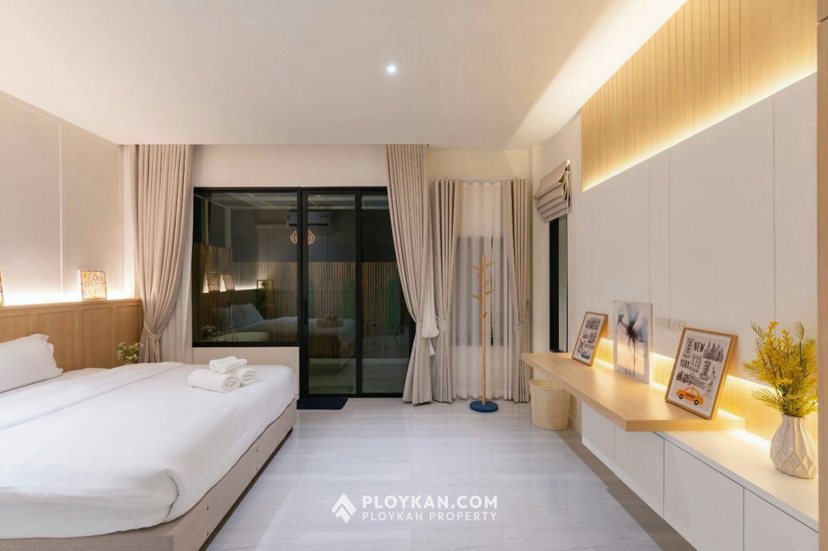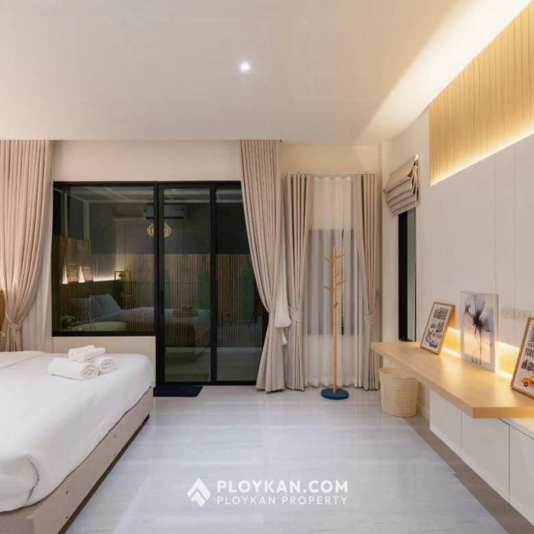 Experience luxury living in this stunning pool villa featuring a total of 4 bedrooms and 4 bathrooms. The main house includes 3 spacious bedrooms and 3 bathrooms, plus a separate guest house with 1 bedroom, 1 bathroom, and a loft area.