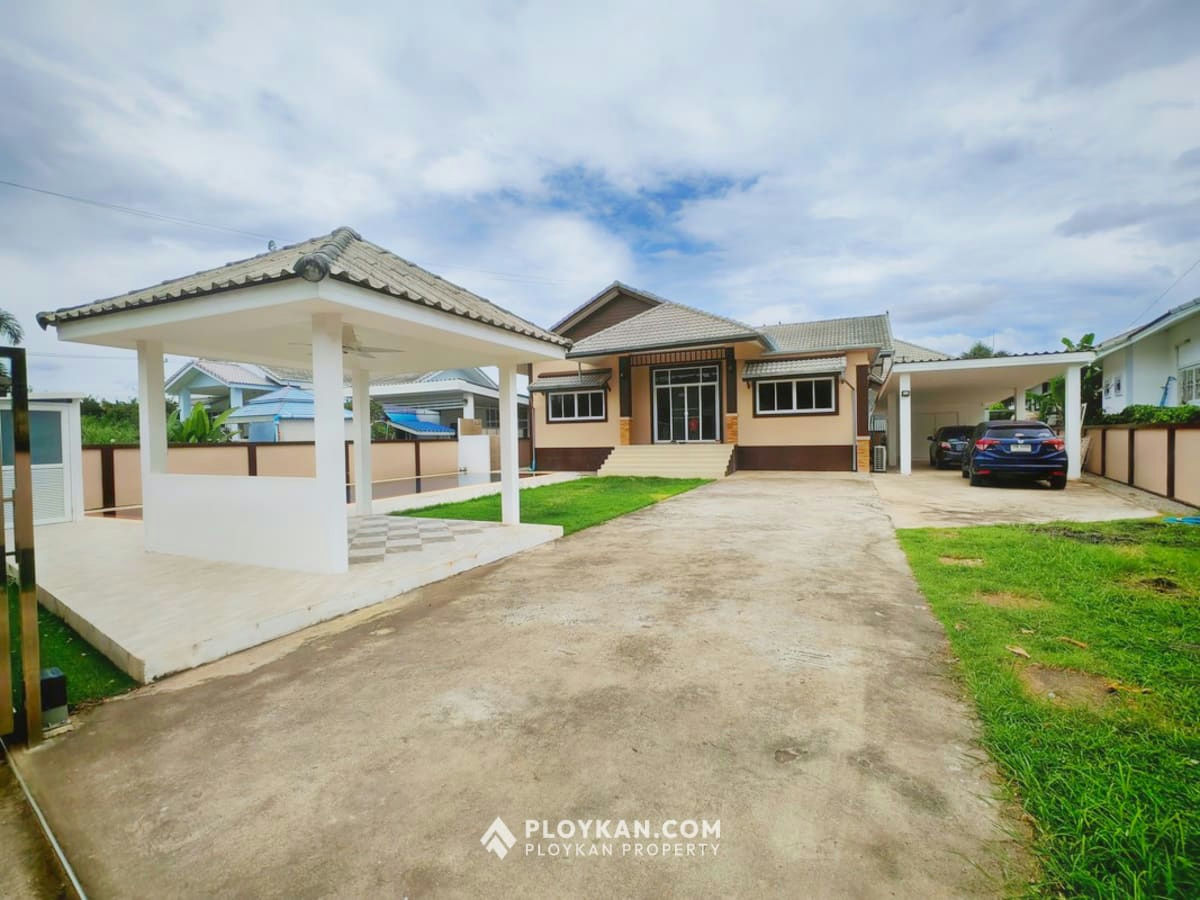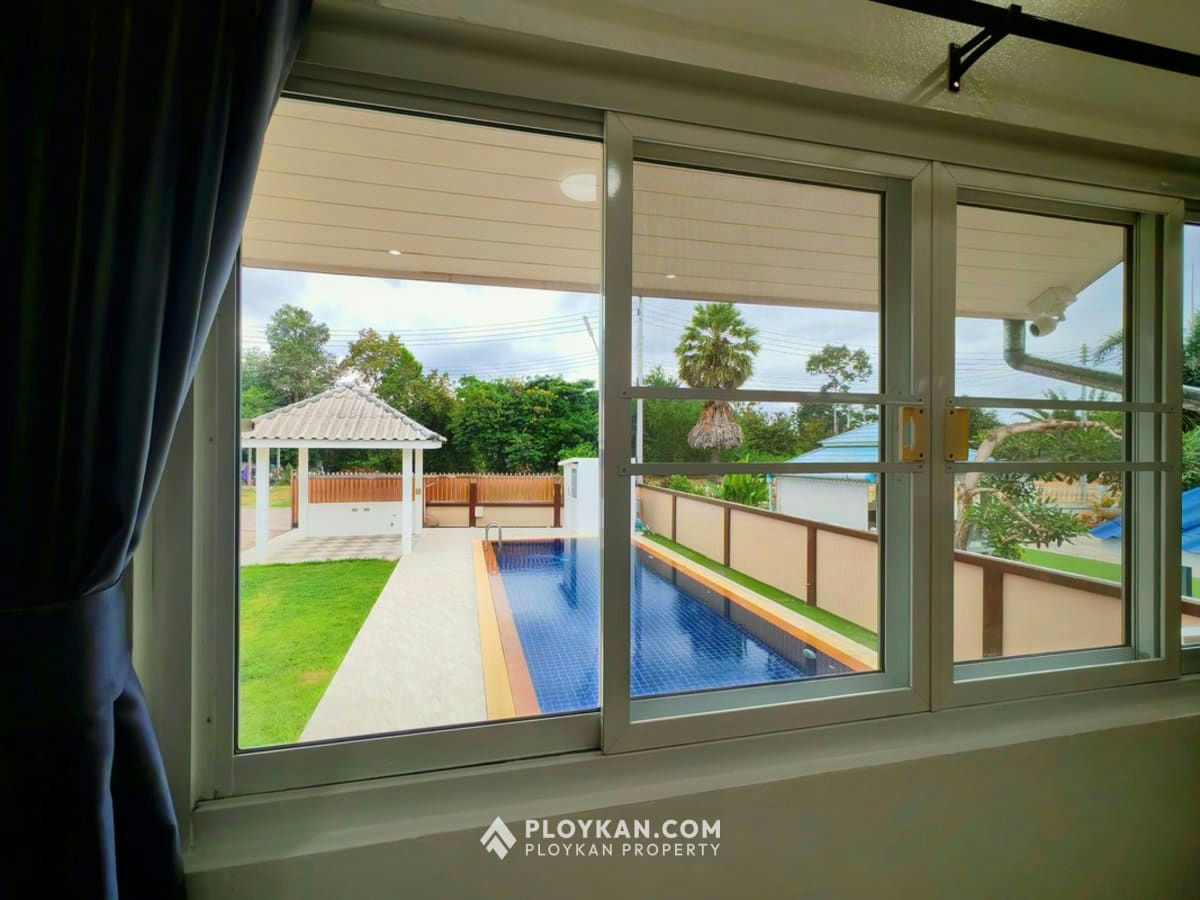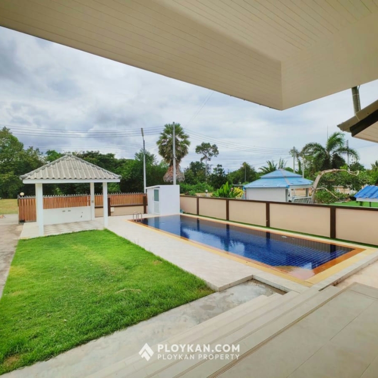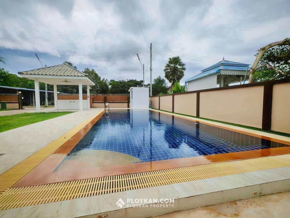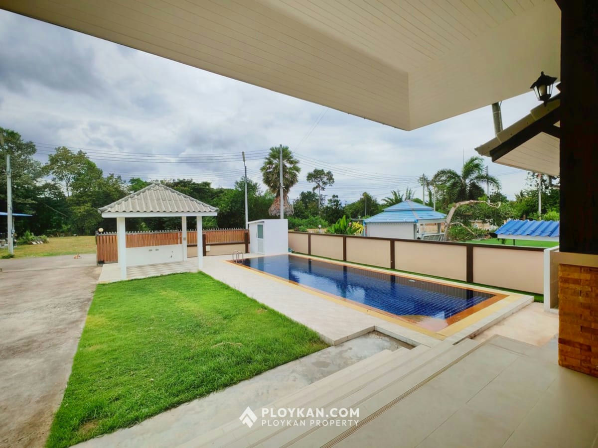 Spacious 3-bedroom house in Hua Hin with pool, solar panels, electric gate, and a large garden.
