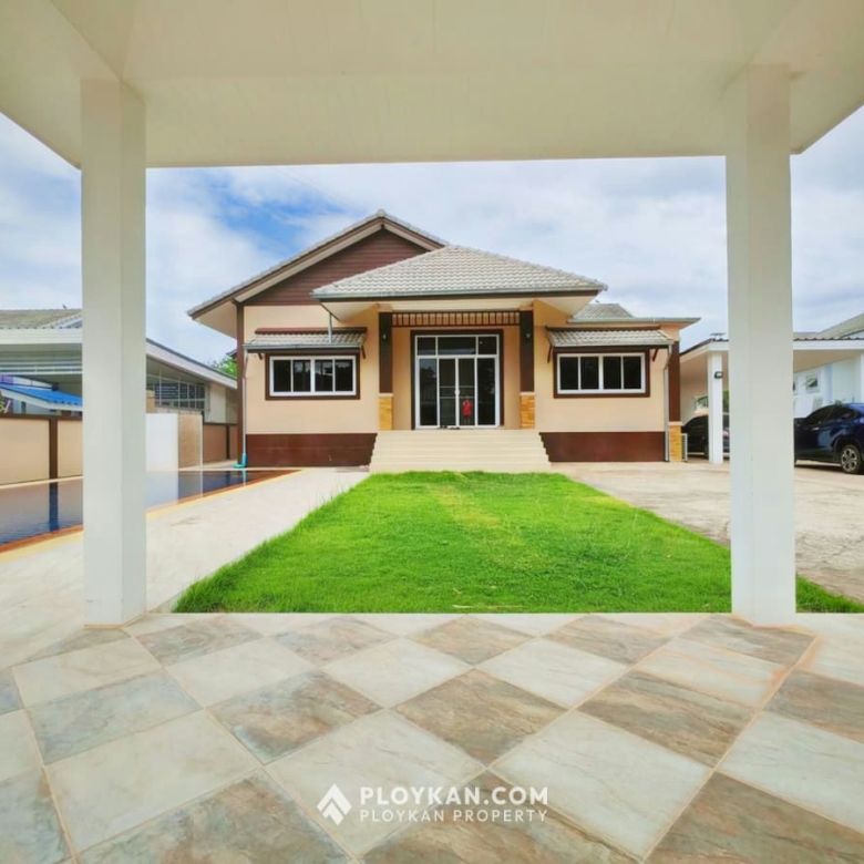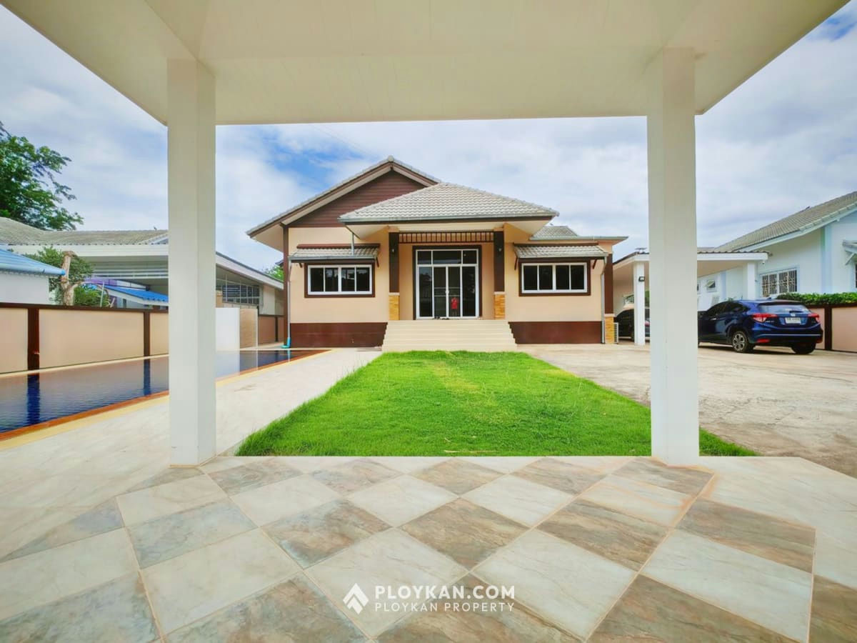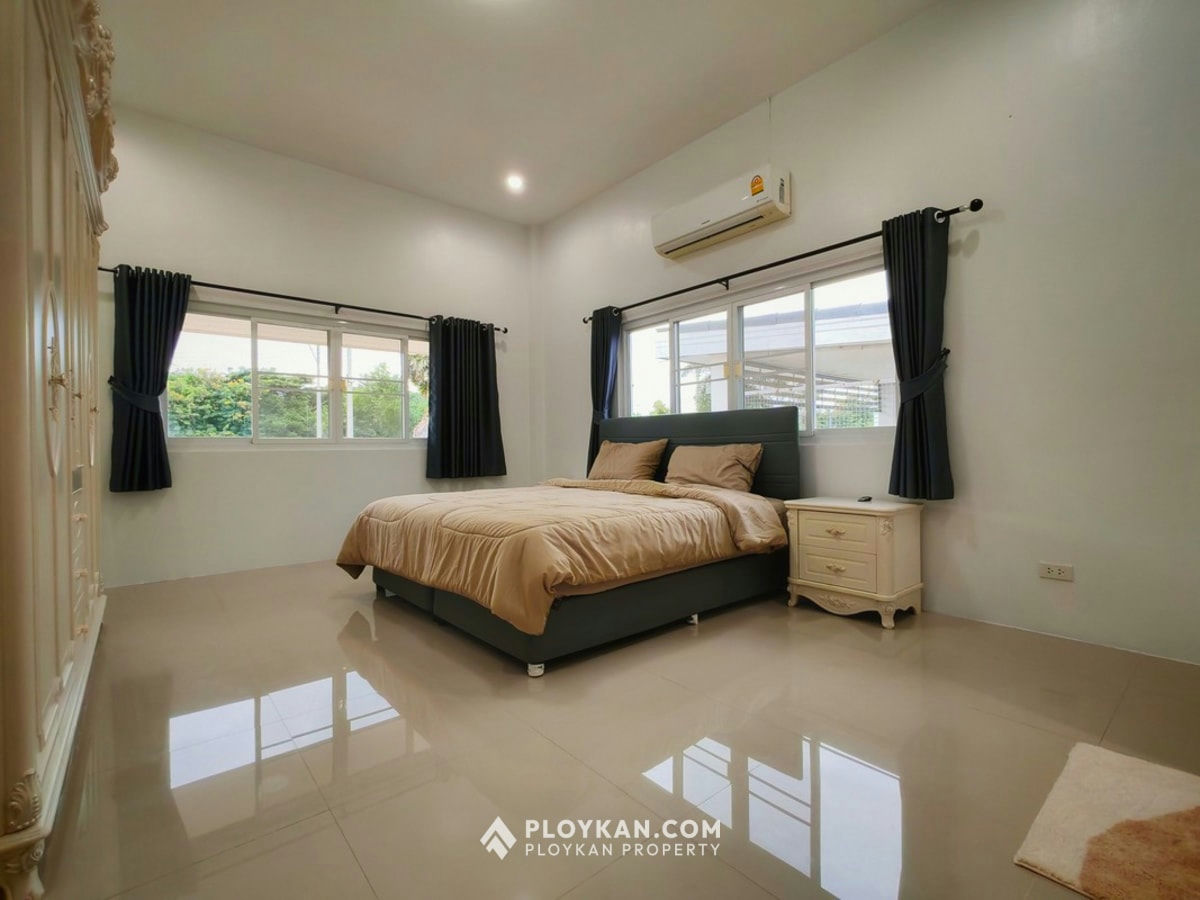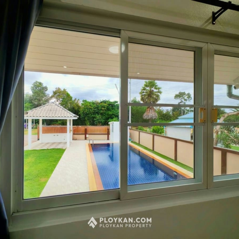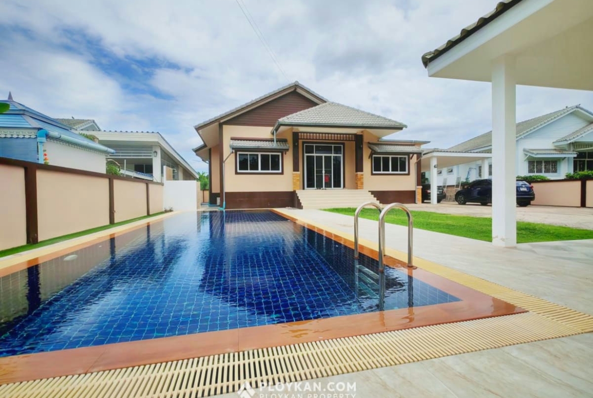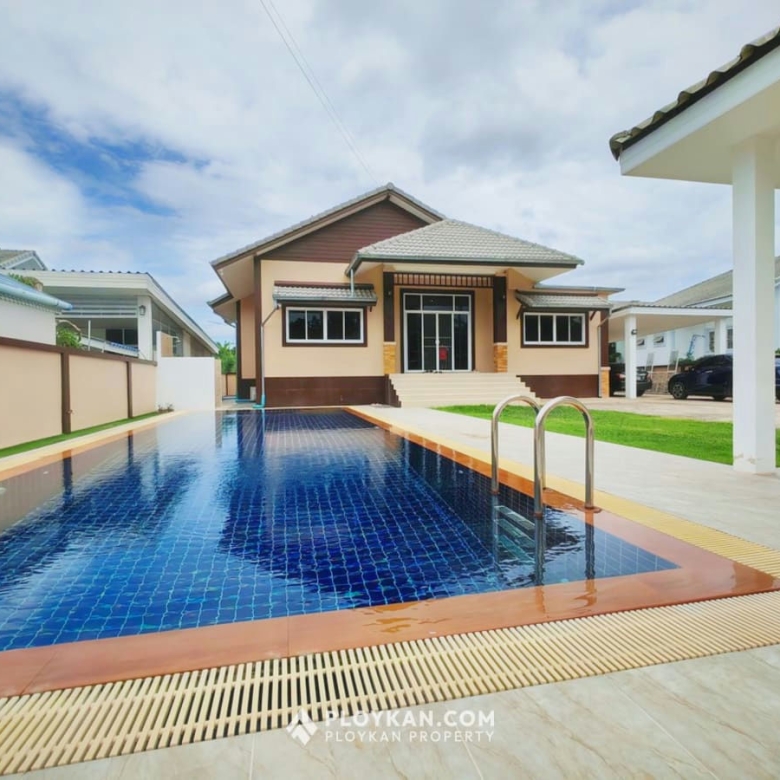 Spacious 3-bedroom house in Hua Hin with pool, solar panels, electric gate, and a large garden.